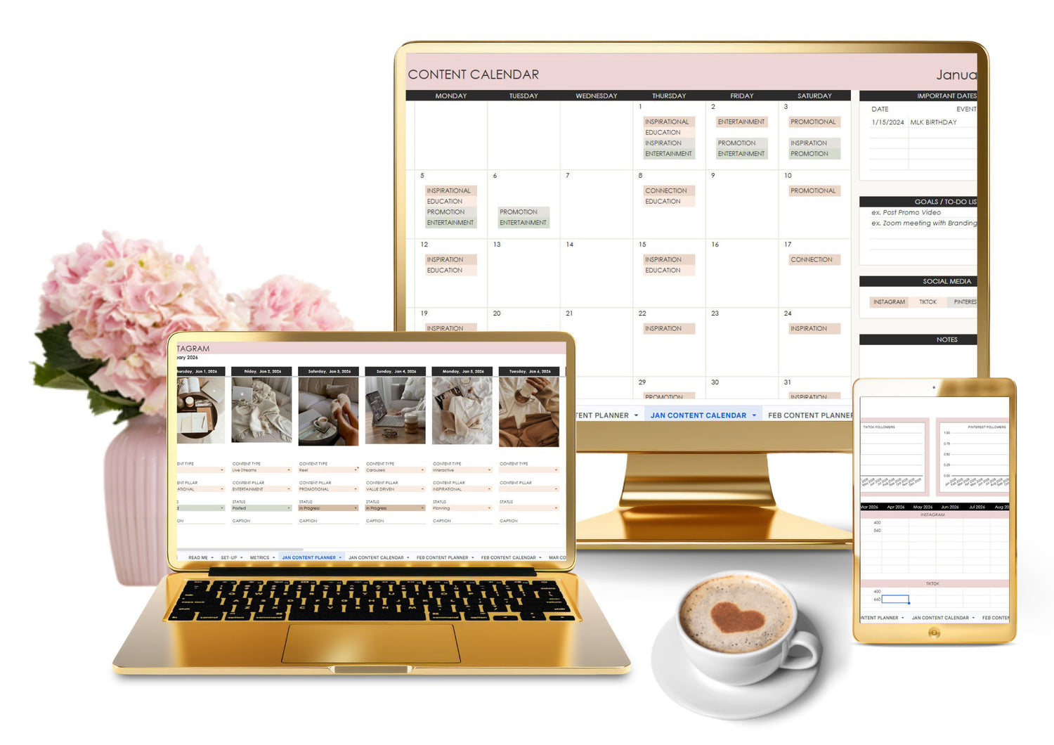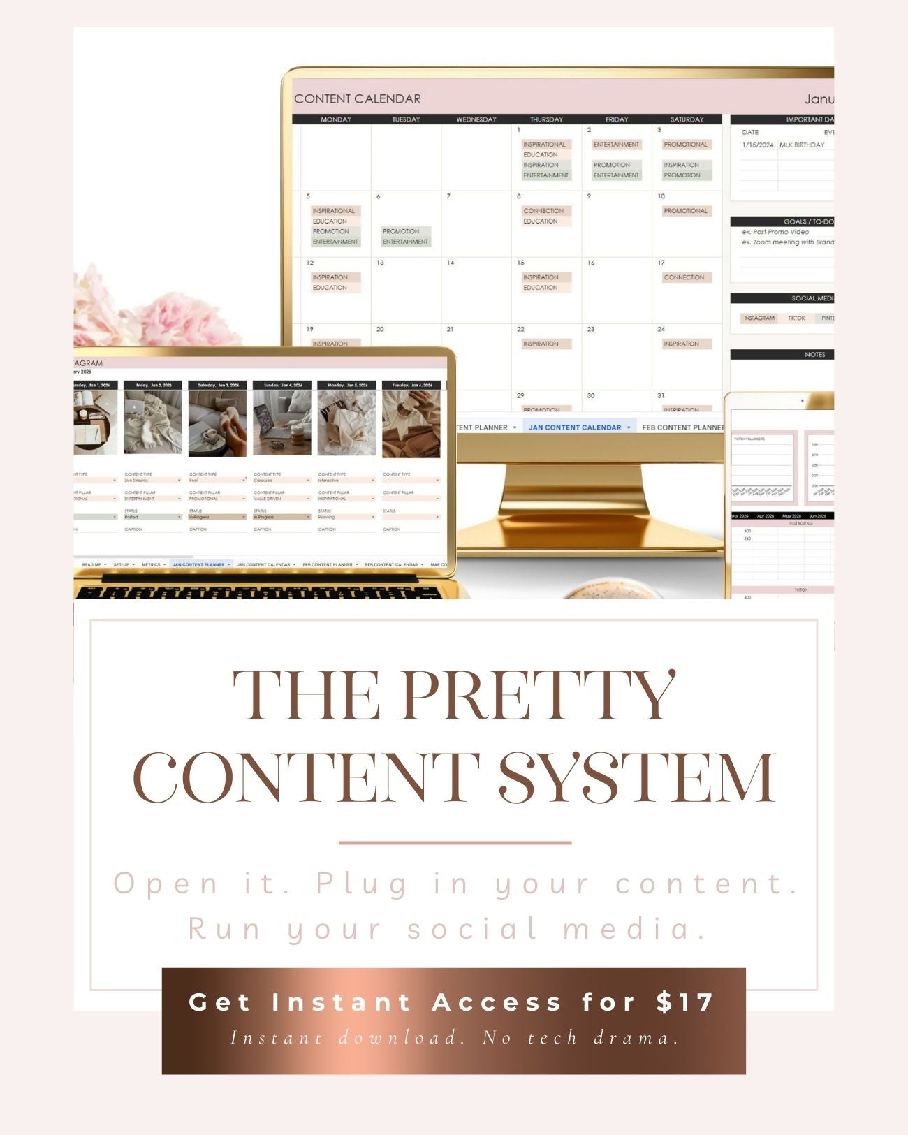 The Pretty Content System organizes your ideas, maps your promotions, and helps you show up consistently without adding more to your plate.